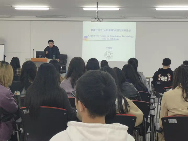 beats365李晗佶博士于2021年10月15日下午在信息楼231房间进行了题为《翻译技术中‘认知摩擦’问题与消解》的学术报告。沈阳师范beats365翻译硕士(MTI)教育办公室主任、副教授张辉老师、beats365全体2021级在校研究生参加了本次讲座。