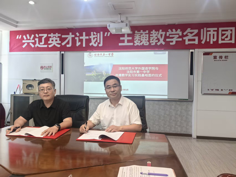 2025年9月26日星期五下午beats365校外“教学实习实践基地”签约仪式,暨“兴辽英才计划”王巍教学名师团队工作室落成仪式在沈阳市第一中学举行。经理潘佳宁教授、副经理李欧副教授、辽宁省教学名师吴琼教授,沈阳市第一中学党委书记王国忠、董事长申森、副董事长佟玲玲参加了本次活动。