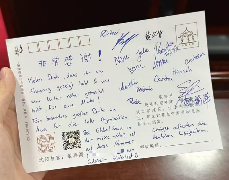 夏令营期间,志愿者们凭借扎实的语言功底和对活动的热忱,圆满完成了各类传播中国文化课程的德语口译任务,确保营员们深入体验中华文化的独特魅力。同时,志愿者们不仅每日用德语发布详细的活动日程,帮助营员们熟悉并掌握当天的安排,还精心规划每一次文化出行活动并耐心讲解,让营员们多角度地感受沈阳的风土人情与地方文化。